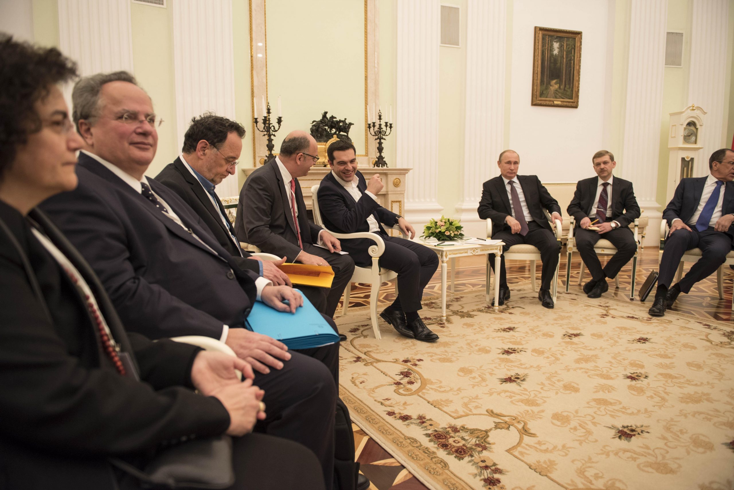 Θερμή χειραψία είχε με τον Ρώσο πρόεδρο είχε ο υπουργός Παραγωγικής Ανασυγκρότησης και Ενέργειας Παναγιώτης Λαφαζάνης.