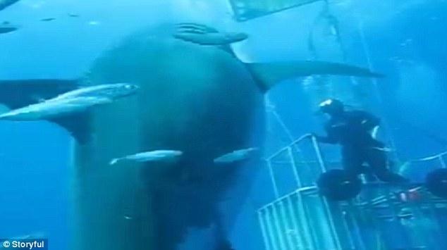 Οι ερευνητές και ο εικονολήπτης Mauricio Hoyos Padilla έδωσαν στη δημοσιότητα μέρος του υλικού που δείχνει τον καρχαρία να αλληλεπιδρά με τους δύτες οι οποίοι είναι κλεισμένοι σε κλουβί.