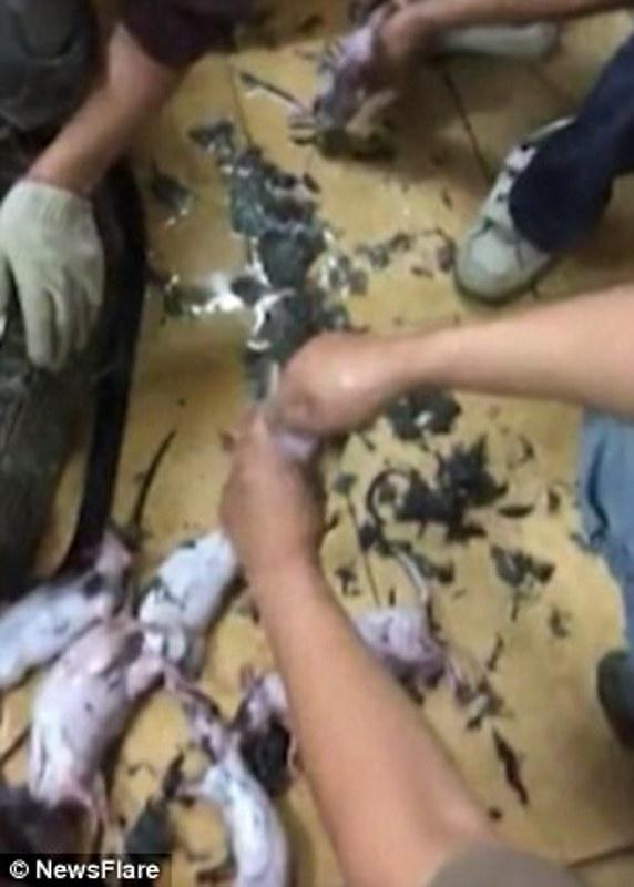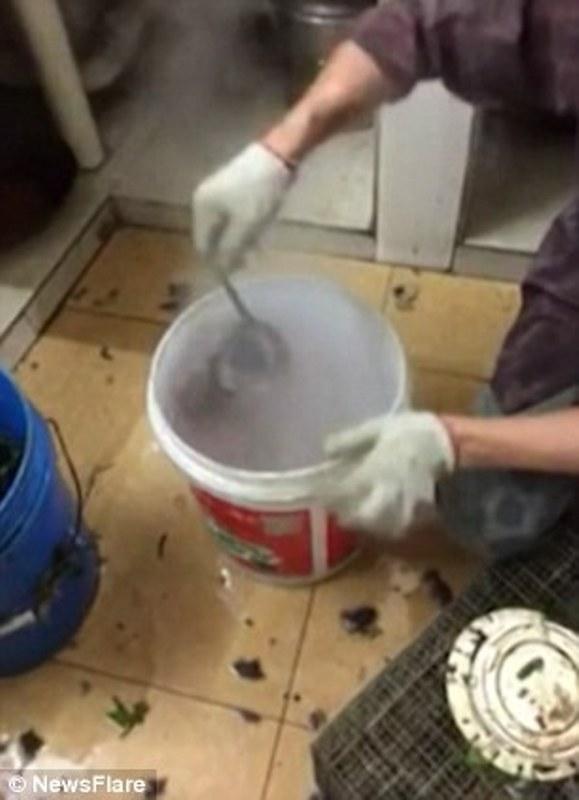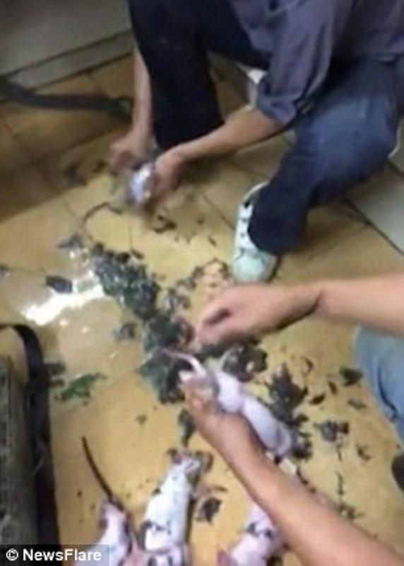 Όμως για να ψήσουν τον αρουραίο θα πρέπει πρώτα να του αφαιρέσουν τη γούνα. Ο πιο γρήγορος και αναίμακτος τρόπος είναι να το κάνουν ενώ το ζωάκι είναι ζωντανό. Στο πίσω μέρος των εστιατορίων που σερβίρουν αρουραίο, εργαζόμενοι βράζουν νερό. Το νερό κοχλάζει, και τότε τραβάνε μέσα από το κλουβί έναν ένα τον αρουραίο και τον βυθίζουν στο νερό.