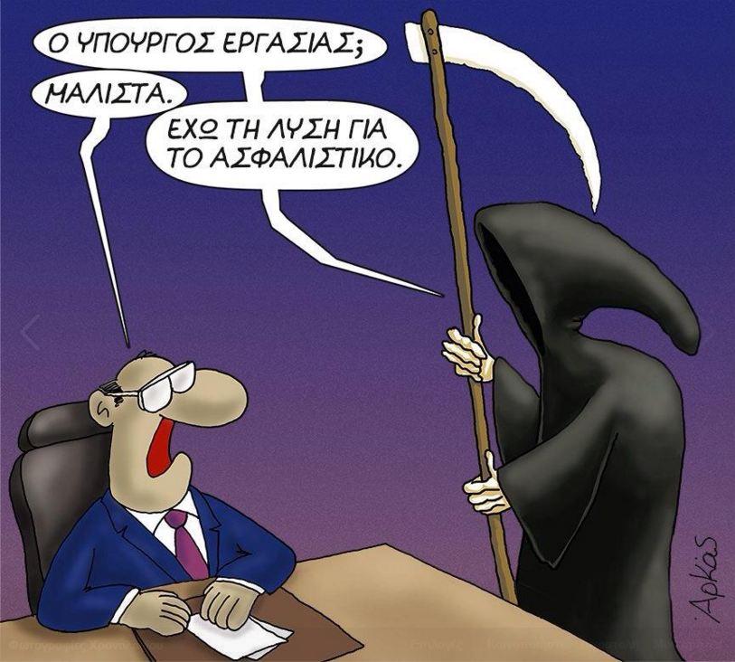Στην δύσκολη θέση, αυτή την φορά, βρίσκεται ο υπουργός Εργασίας Γιώργος Κατρούγκαλος και η κυβέρνηση ΣΥΡΙΖΑ και ΑΝΕΛ. Στο πλευρό του δοκιμαζόμενου υπουργού όμως στέκεται αυτή τη φορά όχι μόνο ο Αρκάς, αλλά και ο… Χάρος.