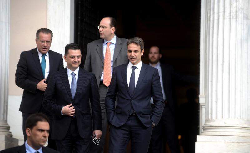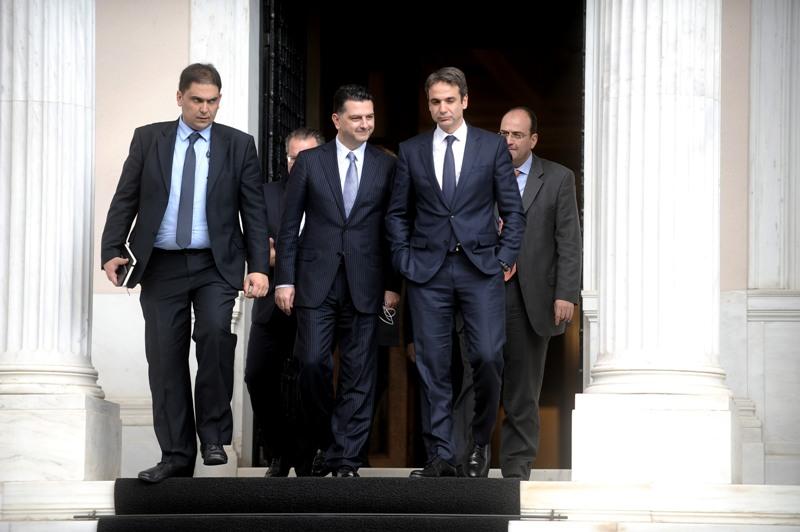 Τους αρχηγούς συνόδευαν στενοί τους συνεργάτες, όπως ο Νίκος Παππάς από την κυβέρνηση και ο Γιώργος Κουμουτσάκος ως νέος εκπρόσωπος τύπου της ΝΔ.