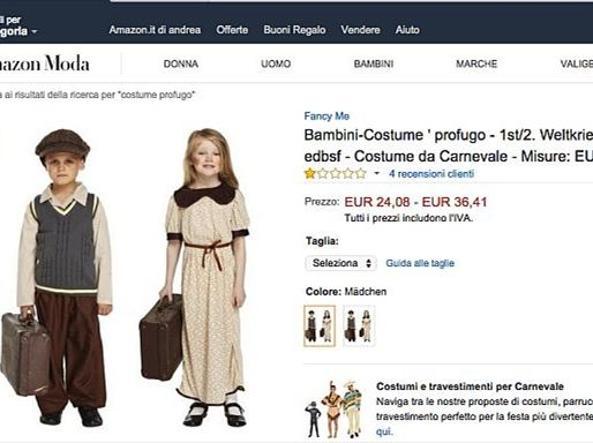 Την έλλειψη ανθρωπισμού απέδειξαν περίτρανα κάποιοι «επιχειρηματίες» που εκμεταλλευόμενοι το προσφυγικό δράμα, εμπορεύονται μέσω του Ιταλικού Amazon αποκριάτικη στολή προσφυγόπουλου στην τιμή των 24-27 ευρώ.