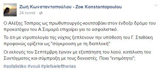 Συγκεκριμένα, η επικεφαλής της «Πλεύσης Ελευθερίας» με ανάρτησή της στο προφίλ της στο Facebook, σημειώνει χαρακτηριστικά: