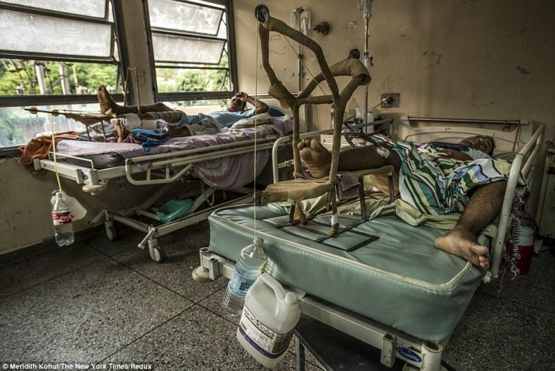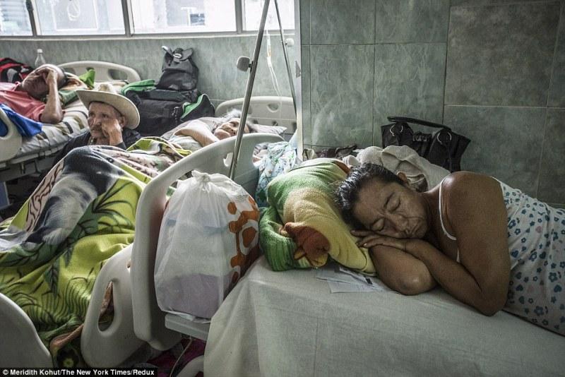 Οι λήψεις του φωτογράφου Meridith Kohut των New York Times δείχνουν ασθενείς στο νοσοκομείο Luis Razetti, ξαπλωμένους σε σπασμένα κρεβάτια, σκεπασμένου με ματωμένα σεντόνια που έχουν να αλλαχτούν μέρες. Κι αυτοί είναι από τους τυχερούς. Οι περισσότεροι κοιμούνται στο πάτωμα. Τα παιδιά είναι ξαπλωμένα στους διαδρόμους, ανάμεσα σε κούτες, χωρίς νερό, φαγητό και περίθαλψη.