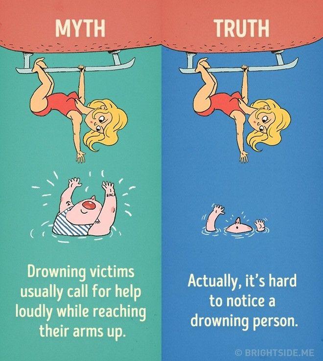 Όταν ένας άνθρωπος πνίγεται ζητά βοήθεια φωνάζοντας και κουνώντας τα χέρια, πράγμα που διαφέρει στην πραγματικότητα, καθώς ο ναυαγοσώστης αδυνατεί να εντοπίσει έναν άνθρωπο που κινδυνεύει στη θάλασσα την ώρα που κουνά τα χέρια του.
