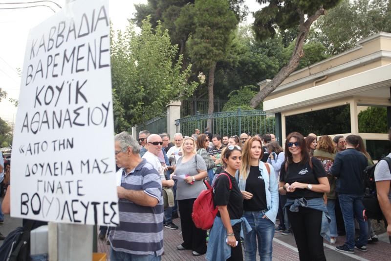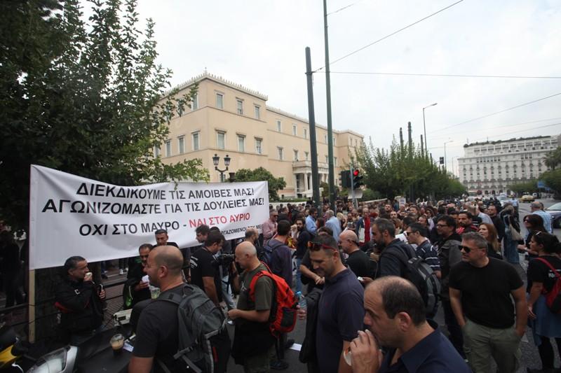 Νωρίτερα οι τεχνικοί και οι δημοσιογράφοι διαδήλωσαν έξω από τη Βουλή.