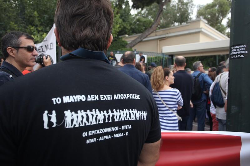 Την ίδια ώρα έξω από το Μαξίμου είναι συγκεντρωμένοι δημοσιογράφοι και τεχνικοί των ιδιωτικών καναλιών, που διαμαρτύρονται για το μαύρο στα κανάλια.