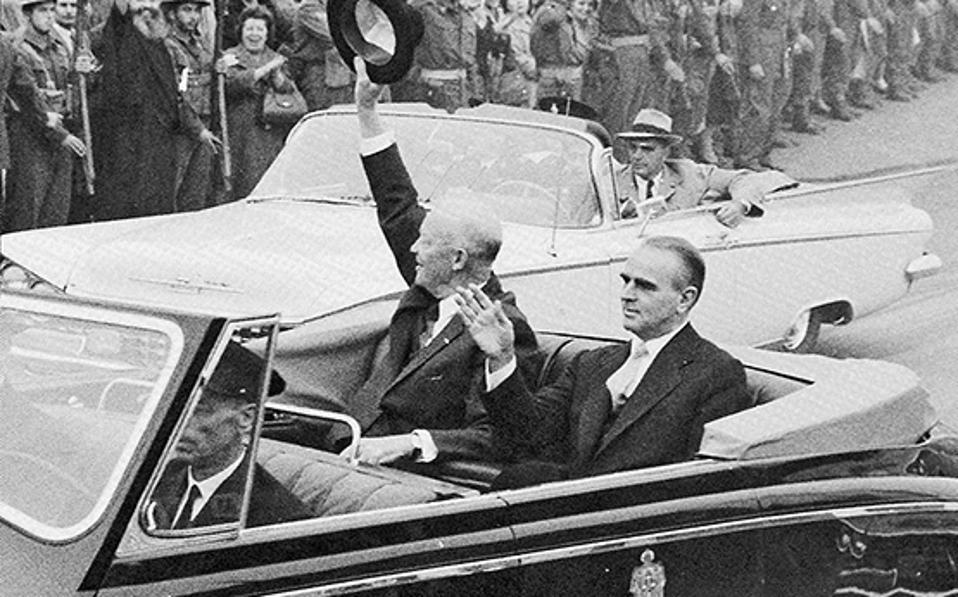 Μικραί χάρτιναι ελληνικαί και αμερικανικαί σημαίαι εσείοντο καθώς διήρχετο το προεδρικόν αυτοκίνητον. Αλλοι εχειροκρότουν και άλλοι εζητωκραύγαζαν “‘Αικ ‘Αικ”»… Ο πρόεδρος Αϊζενχάουερ, ανταπέδιδε τον χαιρετισμόν του πλήθους ιστάμενος όρθιος επί του αυτοκινήτου… Παρά το πλευρόν του ίστατο επίσης όρθιος ο Βασιλεύς (Παύλος)», έγραφε η «Ελευθερία».