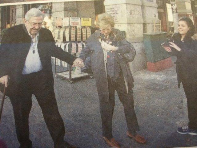 Ο Κωνσταντίνος Γλύξμπουργκ μαζί με τη σύζυγο του Αννα Μαρία κάνουν βόλτα στο κέντρο της Αθήνας. Στον πεζόδρομο της Βουκουρεστίου, εκεί όπου τους περίμενε ο οδηγός του αυτοκινήτου τους, «διασταυρώθηκαν» με τον Ευκλείδη Τσακαλώτο. Ο υπουργός Οικονομικών με το κόκκινο σακίδιο στην πλάτη, τους κοιτά και τους προσπερνά. Η Αννα Μαρία τον βλέπει, τον αναγνωρίζει και του χαμογελά…