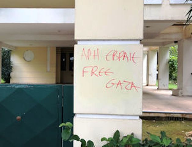Συγκεκριμένα, τα συνθήματα έγραφαν: «Άρη εβραίε, Free Gaza» και είχαν γραφτεί σε τοίχους του σπιτιού που μένει ο Άρης Πορτοσάλτε και η οικογένειά του.