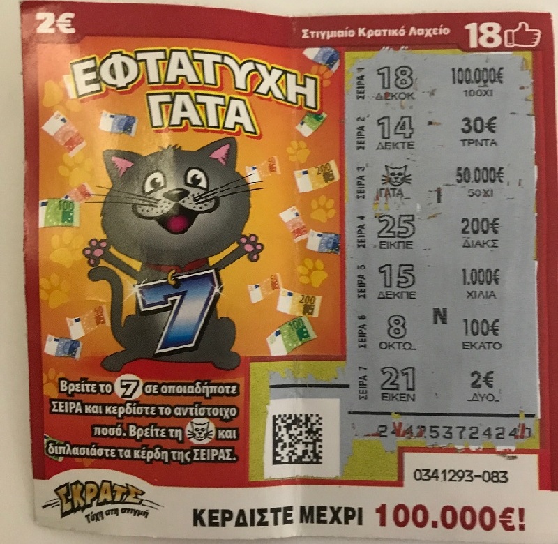 Ο μεγάλος τυχερός του ΣΚΡΑΤΣ από την Κοζάνη συνήθιζε να δοκιμάζει την τύχη του συχνά με τα παιχνίδια του ΟΠΑΠ. Μάλιστα, είχε φτάσει πολύ κοντά στο μεγάλο όνειρο, καθώς είχε χάσει το 5+1 στο ΤΖΟΚΕΡ για έναν μόνο αριθμό. Το γεγονός αυτό δεν τον πτόησε – το θεώρησε σημάδι της τύχης – και συνέχισε ακάθεκτος το «κυνήγι». Η επιμονή του, όπως αποδείχτηκε, είχε αποτέλεσμα και μάλιστα «χρυσό». Με ένα δελτίο «Xρυσός 24 Καρατίων», που αγόρασε από περίπτερο της Κοζάνης, κέρδισε το ποσό των 500.000 ευρώ.