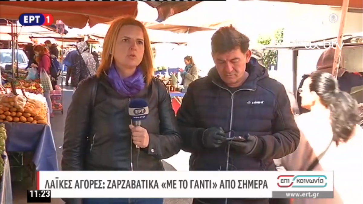 Μάταια η ρεπόρτερ της ΕΡΤ με παράγοντα των λαϊκών προσπαθούν να πείσουν ότι έχουν παρθεί μέτρα δείχνοντας γάντια και αντισηπτικά στη λαϊκή Περιστερίου, όταν πίσω τους ακριβώς άνθρωποι συνωστίζονται χωρίς να τηρούν καμιά απόσταση ασφαλείας.