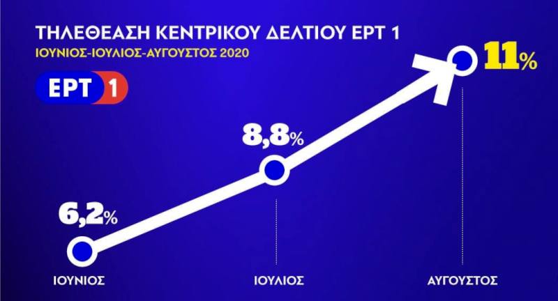 Σύμφωνα, μάλιστα, με τα τελευταία στοιχεία της Nielsen, το διάστημα από 1η έως 15 Αυγούστου, το κεντρικό δελτίο ειδήσεων της ΕΡΤ1, στις 21:00, κατέγραψε μέση τηλεθέαση 11%, καθώς το παρακολουθούν καθημερινά περισσότεροι από 265.000 τηλεθεατές, οι οποίοι προτιμούν τη δημόσια τηλεόραση για την ενημέρωσή τους.