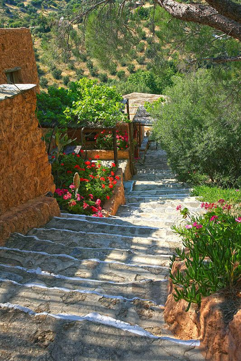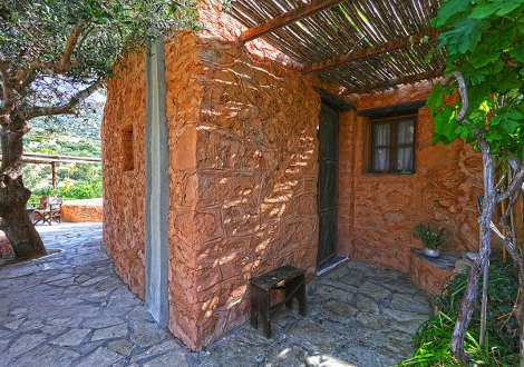 Τα σπιτάκια είναι ουσιαστικά χτισμένα το ένα πάνω στο άλλο, ενώ είναι χαρακτηριστικό ότι σε πολλές περιπτώσεις η οροφή του ενός είναι και… βεράντα του άλλου. Ενα λιθόστρωτο μονοπάτι γεμάτο κληματαριές, ελιές και λουλούδια ενώνει μεταξύ τους τα 10 σπιτάκια δίνοντας την αίσθηση στους επισκέπτες ότι μένουν σε ένα παραδοσιακό χωριό της νοτιοανατολικής Κρήτης.