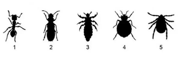 1. μυρμήγκι 2. τερμίτης 3. ψείρα 4. κοριός 5. τσιμπούρι