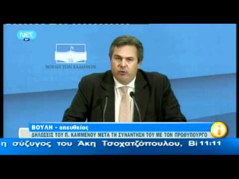 Στις 10:30 ο υπηρεσιακός πρωθυπουργός συναντήθηκε με τον Π. Καμμένο ο οποίος τόνισε ότι πρέπει άμεσα να γίνει η καταγγελία του μνημονίου υπογραμμίζοντας ότι οδηγεί σε αδιέξοδο τους Έλληνες και την εθνική οικονομία.