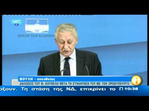 «Πρέπει ο πρωθυπουργός να προτείνει την έκδοση ευρω-ομολόγου, να ζητήσει να υπάρξει χαλάρωση της δημοσιονομικής προσαρμογής μέσα από την επιμήκυνση του προγράμματος» τόνισε ο Φώτης Κουβέλης μετά από την συνάντησή του με τον Παναγιώτη Πικραμμένο.