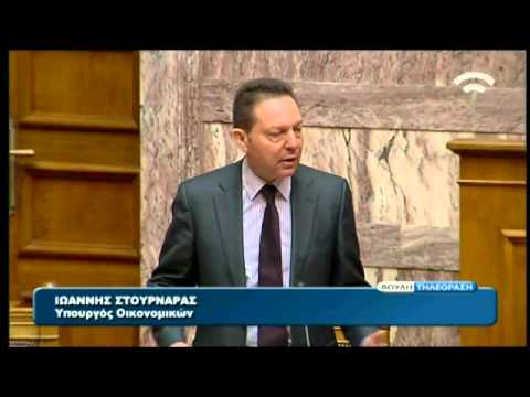 Στην πρώτη του απάντηση ο κ. Στουρνάρας επέμεινε ότι: «η κυβέρνηση διαπραγματεύεται σκληρά και σε μόνιμη βάση με πράξεις και με έργα και όχι με λεονταρισμούς και μεγαλοστομίες».