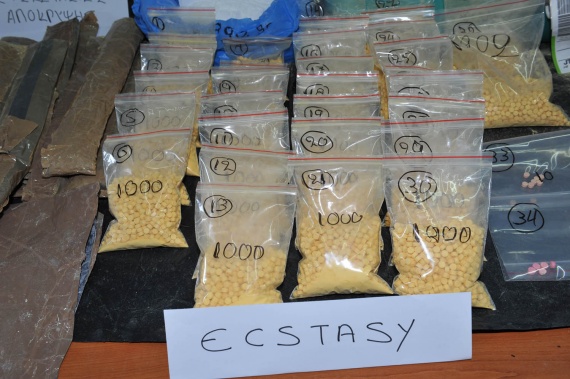 Όπως αναφέρει ανακοίνωση της Αστυνομίας, κατασχέθηκε κοκαΐνη βάρους 2 κιλών και 990 γραμμαρίων καθώς και 33.919 χάπια ecstasy.