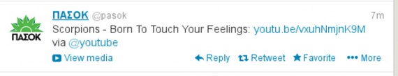 Βίντεο με το τραγούδι των Scorpions «Βorn to touch your feelings» ανήρτησε το ΠΑΣΟΚ στον επίσημο λογαριασμό του στο twitter!