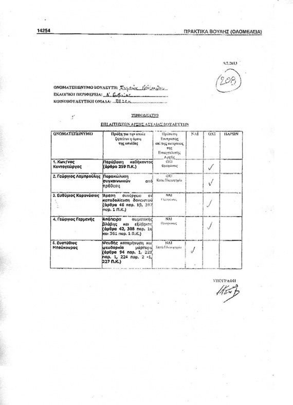 «Με έκπληξη διαπίστωσα από επίσημα πρακτικά της Βουλής που διέρρευσαν στον Τύπο, ότι εμφανίζομαι να έχω καταψηφίσει την άρση της ασυλίας του βουλευτή της Χρυσής Αυγής Γιώργου Γερμενή σε ψηφοφορία προ μηνών.