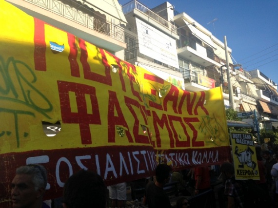 «Πρόκειται για εγκληματική, μαφιόζικη οργάνωση νεοναζί δολοφόνων, που ο λαός, η νεολαία, το εργατικό κίνημα πρέπει να τους απομονώσει τελείως, εδώ και τώρα, κάνοντας πράξη, σύνθημά του, τα λόγια του ποιητή ''το φασισμό βαθιά κατάλαβέ τον, δε θα πεθάνει μόνος, τσάκισέ τον''», δήλωσε ο Γενικός Γραμματέας της Χρυσής Αυγής Δ. Κουτσούμπας από το χώρο της συγκέντρωσης.