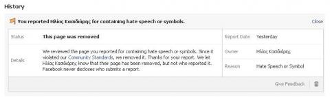 Στο αποτέλεσμα της αναζήτησης Ηλίας Κασιδιάρης το facebook αναφέρει ότι η σελίδα έχει διαγραφεί.