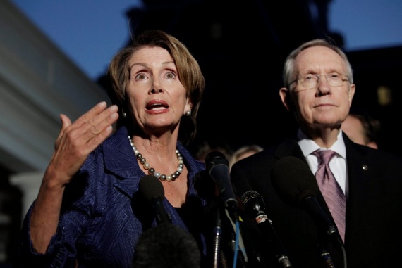 Συμφωνώντας ότι… διαφωνούν αμετακίνητα, ο πρόεδρος της Γερουσίας (που ελέγχουν οι Δημοκρατικοί) Χάρι Ρέιντ και η επικεφαλής των μειοψηφούντων Δημοκρατικών στη Βουλή Νάνσι Πελόζι(φωτογραφία κάτω – Reuters) βγήκαν από τη συνάντηση με τον πρόεδρο της Βουλής (που ελέγχουν οι Ρεπουμπλικανοί) Τζο Μπένερ και τον πρόεδρο των μειοψηφούντων στη Γερουσία Ρεπουμπλικανών Μιτς ΜακΚόνελ χωρίς κανένα απτό αποτέλεσμα.