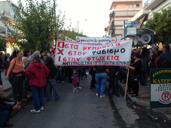 «Μόνο ο αγωνιζόμενος λαός μπορεί να ξεριζώσει τη σκουριά του φασισμού και του συστήματός του από τις γειτονιές μας, όπως και το '40. Εμπρός να χτίσουμε ένα παλλαϊκό τείχος αξιοπρέπειας, αλληλεγγύης. Αγώνας ενάντια στη φτώχεια, τα μνημόνια, την κυβέρνηση, τον ολοκληρωτισμό, τον φόβο και τον φασισμό», τονίζεται στη σχετική ανακοίνωση του Αντιφασιστικού Συντονισμού.