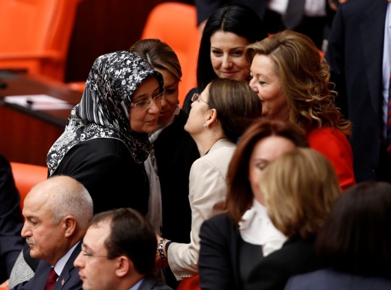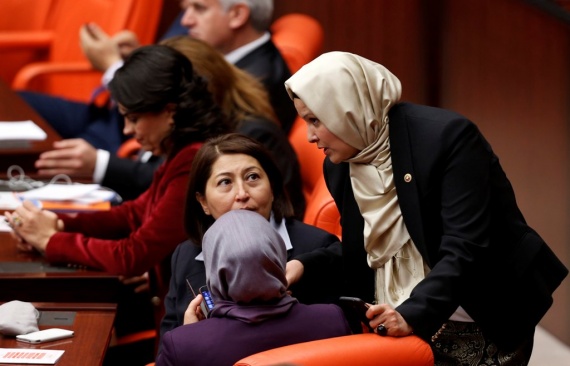 Συνολικά τέσσερις βουλευτίνες του κυβερνητικού κόμματος φόρεσαν σήμερα την μαντίλα. ( Nurcan Dalbudak, Sevde Beyazit Kacar, Gulay Samanci και Gonul Bekin Sahkulubey).