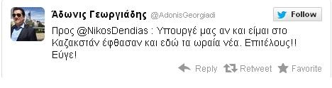 7:20 Μήνυμα του Άδωνι Γεωργιάδη στο twitter