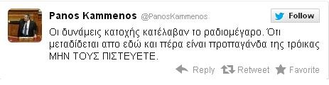 8:05 Μήνυμα στο twitter του αρχηγού των ΑΝΕΛ Πάνου Καμμένου