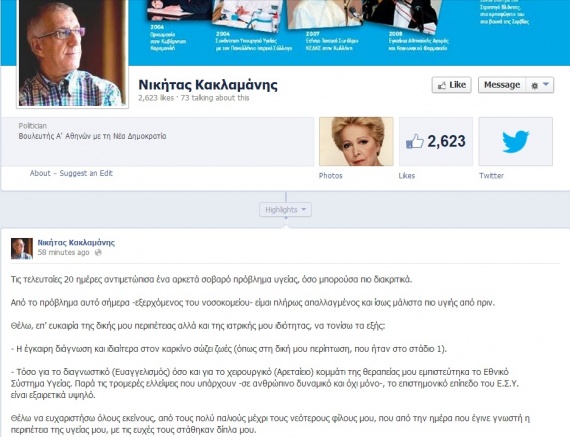Διαβάστε τι έγραψε ο Νικήτας Κακλαμάνης στο facebook: