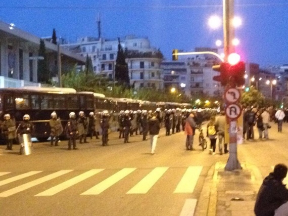 15:20 Διμοιρίες των ΜΑΤ βρίσκονται παραταγμένες, αυτή την ώρα, στην οδό Χαλκοκονδύλη