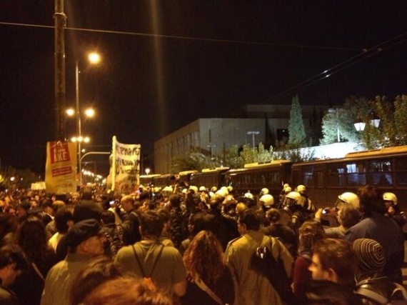 16:13 Τον Εθνικό Ύμνο έψαλλαν οι φοιτητές. Σποραδικές φραστικές επιθέσεις κατά των δυνάμεων των ΜΑΤ.