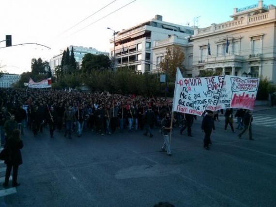 17:05 Στο ύψος της Ρηγίλλης βρίσκεται η πορεία. Οι διαδηλωτές μιλούν για 10.000 -12.000 συμμετέχοντες.