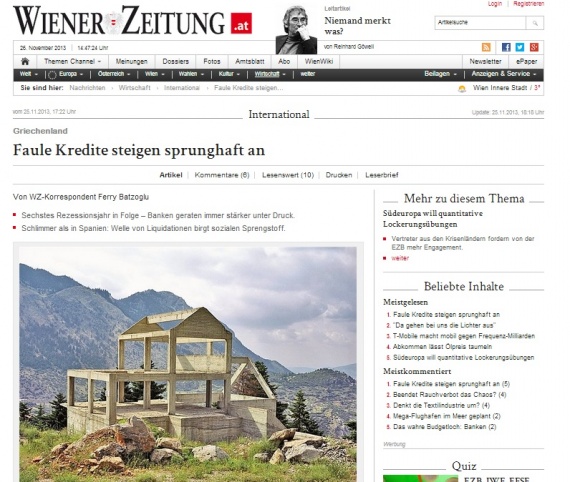 Στην τραγική κατάσταση της οικονομίας και του τραπεζικού συστήματος αναφέρεται δημοσίευμα της αυστριακής Wiener Zeitung.