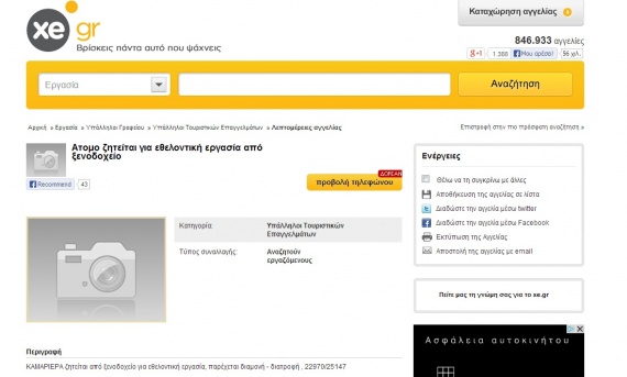Ξενοδοχείο ανήρτησε αγγελία προσφέροντας τροφή και διαμονή χωρίς μισθό, όπως διαβάζουμε στην αγγελία
