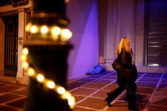 Χαρακτηριστική είναι η φωτογραφία που μεταδίδει η Eurokinissi με άστεγους πλάι στην φωτισμένη Αθήνα (φωτογραφία κάτω). Τα τηλέφωνα υποδοχής αστέγων βρίσκονται στο τέλος του κειμένου