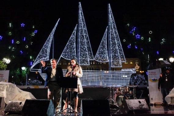 Αντί για δέντρο, αυτή τη φορά φωταγωγήθηκε στο Σύνταγμα ένα καράβι.