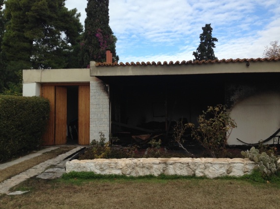 Σύμφωνα με τις πρώτες πληροφορίες, η πυρκαγιά οφείλεται σε εμπρησμό και έχουν καταστραφεί το σαλόνι και ένα μικρό μέρος της κουζίνας, καθώς η παρέμβαση της πυροσβεστικής ήταν άμεση.