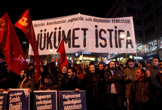 Εντωμεταξύ νωρίτερα την Τετάρτη δημιουργήθηκαν επεισόδια στην Κωνσταντινούπολη όταν η η τουρκική αστυνομία κάνοντας χρήστη δακρυγόνων προσπάθησε να διαλύσει μια διαδήλωση 5.000 ανθρώπων που είχαν συγκεντρωθεί στην Κωνσταντινούπολη ζητώντας την παραίτηση του πρωθυπουργού της Τουρκίας Ρετζέπ Ταγίπ Ερντογάν, λίγες ώρες μετά την παραίτηση των τριών υπουργών της κυβέρνησής του, τα ονόματα των οποίων έχουν εμπλακεί σε σκάνδαλο διαφθοράς.