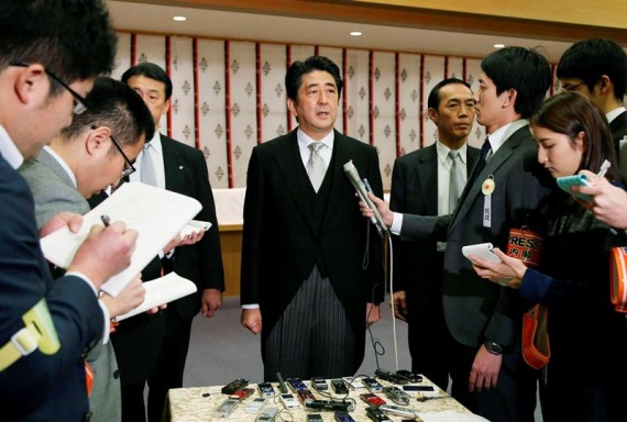 Ο συντηρητικός Άμπε, ο οποίος ανέλαβε την εξουσία για δεύτερη φορά πριν από ένα χρόνο, είχε δηλώσει ότι μετανιώνει που δεν είχε επισκεφθεί το μνημείο αυτό –στο οποίο οι Ιάπωνες ηγέτες της εποχής του πολέμου τιμώνται μαζί με τους νεκρούς του πολέμου, και το οποίο θεωρείται σε πολλές ασιατικές χώρες ένα σύμβολο του ιαπωνικού μιλιταρισμού– κατά την διάρκεια της πρώτης του θητείας (2006-2007).