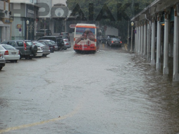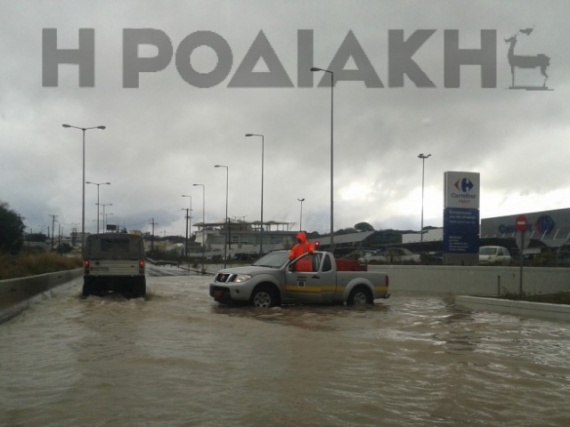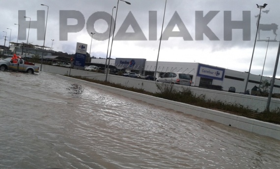 Σε ποτάμια μετατράπηκαν οι περισσότεροι δρόμοι της Ρόδου μετά από ισχυρή βροχή που έπεσε το απόγευμα στο νησί.