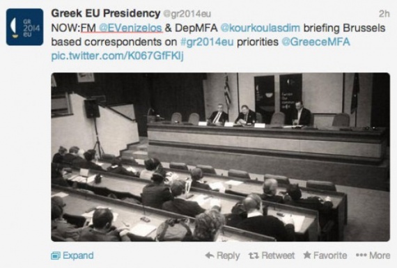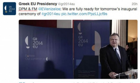 Με την ιδιότητα του υπουργού Εξωτερικών (Foreign Minister) και του αναπληρωτή πρωθυπουργού (Deputy Prime Minister) εμφανίστηκε κατά λάθος την Τρίτη ο Ευάγγελος Βενιζέλος στον επίσημο λογαριασμό της ελληνικής προεδρίας στο twitter.