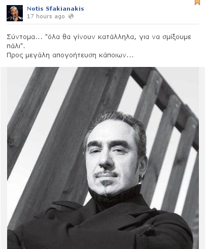 Με μήνυμά του στο facebook απάντησε ο Νότης Σφακιανάκης για το κλείσιμο του μαγαζιού που τραγουδούσε.
