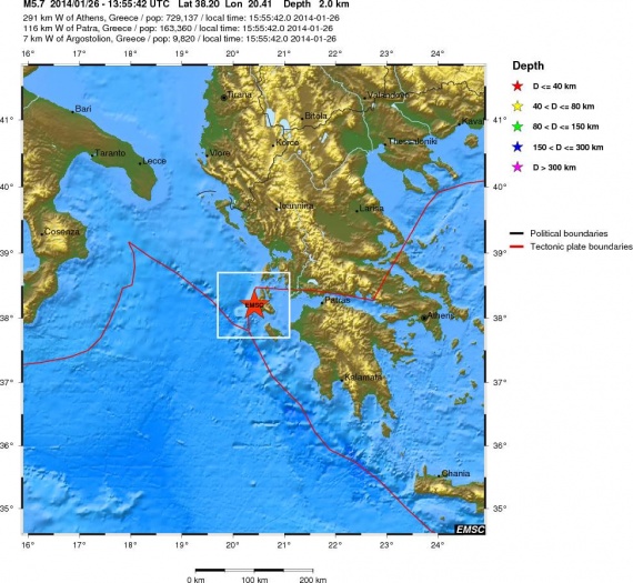 Ισχυρή σεισμική δόνηση σημειώθηκε λίγο πριν από τις 4 το απόγευμα στη θαλάσσια περιοχή ανοικτά της Κεφαλονιάς.