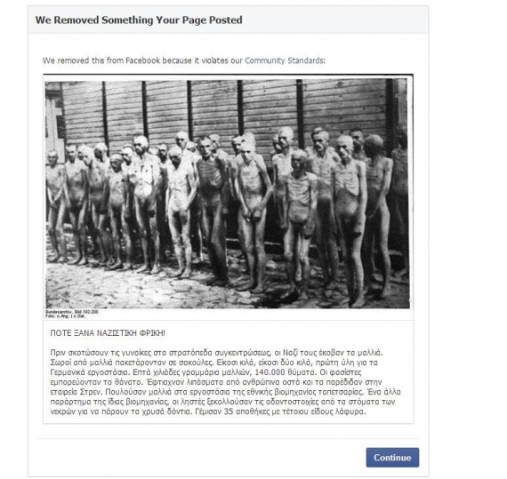 Σύμφωνα με τον δημιουργό της σελίδας χρυσαυγίτες έκαναν μαζικά report σε φωτογραφία που αναρτήθηκε από τα στρατόπεδα συγκέντρωσης των ναζιστών με αφορμή την ημέρα μνήμης του Ολοκαυτώματος.