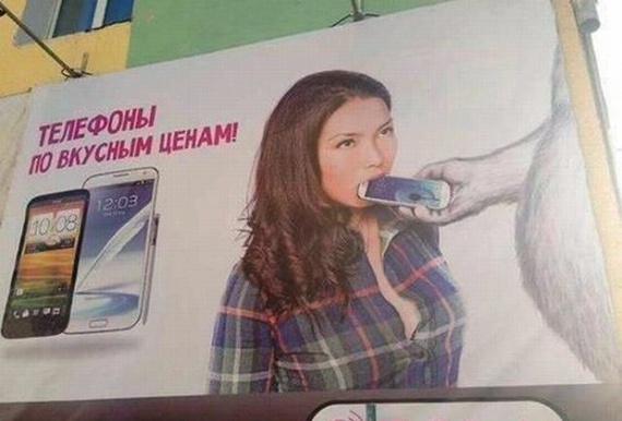 Αλλά στη Ρωσία το παράκαναν. Προφανώς οι εμπνευστές των διαφημίσεων έχουν μεγάλες.. ορέξεις ή πιστεύουν ότι το κοινό είναι πεινασμένο. Όπως και να έχει, οι φωτογραφίες που ακολουθούν είναι ενδεικτικές αλλά και παντελώς άσχετες με το θέμα που (υποτίθεται ότι) διαφημίζουν.