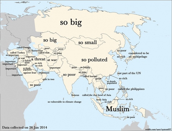 Για παράδειγμα ερωτήσεις του στυλ: «Γιατί η Ισπανία είναι άδεια, γιατί το Καζακστάν είναι τόσο μεγάλο;» τίθενται συχνά προς απάντηση στην Google και έτσι η «αυτόματη συμπλήρωση» (auto-complete) λέξεων ή φράσεων, οι οποίες πληκτρολογούνται στην μηχανή αναζήτησης, αποκαλύπτει στερεότυπα που εκατομμύρια άνθρωποι έχουν για πολλές χώρες σε Ασία και Ευρώπη.